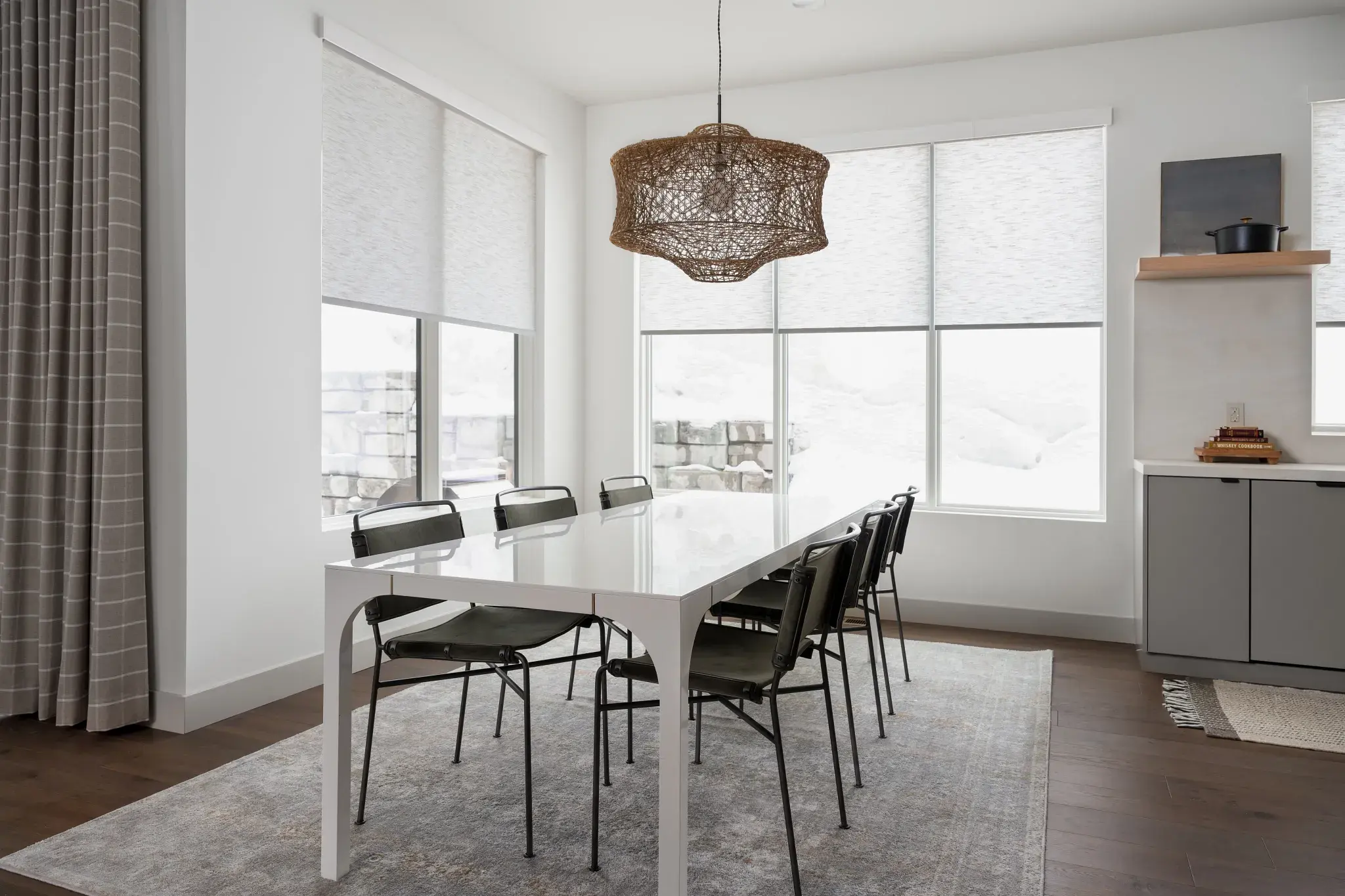 Sliding glass doors or breakfast nooks often require treatments that balance privacy and light control. Choose roller shades with a light filtering feature to soften incoming light, creating an inviting glow during breakfast. For such large expanses, consider shades with dual fabric options for maximum versatility. Open them fully to enjoy your morning coffee bathed in soft sunlight, or close them for a cozy evening dinner. Their smooth functionality ensures ease when you need to transition between these settings.