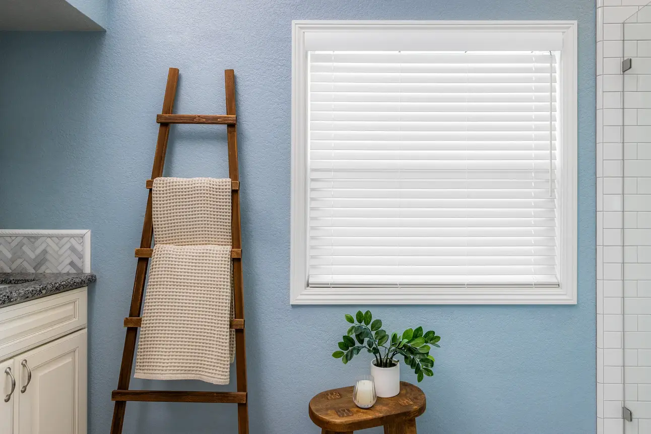 Where to use: Kitchens, bathrooms, and laundry rooms are prime candidates for white faux wood blinds. Their moisture resistance ensures long-term performance and a crisp, clean appearance.