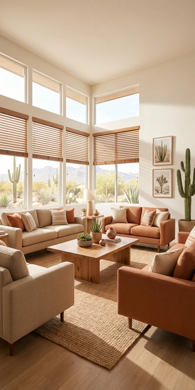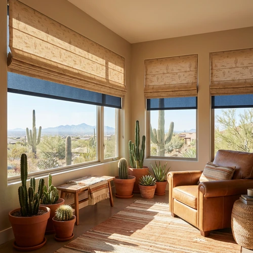 Cellular Shades, Solar Shades, and Wood Blinds are ideal for Phoenix’s dry heat. These options help manage sunlight, reduce glare, and maintain comfort while standing up to the region’s intense climate.