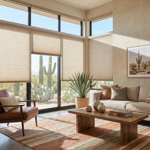 Cellular Shades are designed to insulate windows, helping Scottsdale homeowners potentially lower cooling costs and maintain comfortable indoor temperatures during the hottest months.