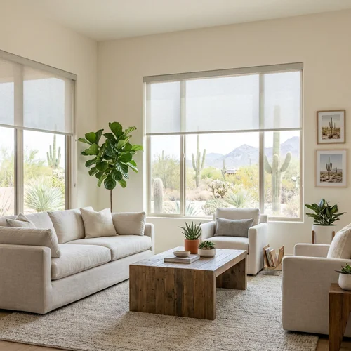 Yes. Cellular and solar shades are designed to insulate windows and block harsh sunlight, helping keep interiors cooler and more comfortable during Scottsdale’s hottest months while protecting furnishings from UV damage.