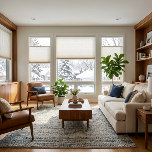 Minneapolis puts its homes through the full range of seasonal extremes, from prolonged sub-zero winters with heavy snow and ice to warm, humid summers with strong sun that drives up cooling costs and fades furnishings over time. With temperatures that can swing more than 100 degrees between seasons, your windows are a significant factor in how comfortable and efficient your home is year-round. The right window treatment helps hold heat in during the long cold months, cuts down on summer glare and heat gain, and keeps energy costs from climbing. We help you find the right solution for each room, each window, and the way you actually live in your space.