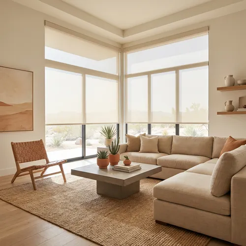 Solar Shades and Cellular Shades are the top performers in the desert climate. Solar Shades block UV rays and glare while preserving your view, and Cellular Shades insulate at the glass to reduce heat transfer and ease the load on your AC. Composite Shutters are also a strong choice, offering precise light control without warping or fading in extreme heat. Your Design Consultant can recommend the best option for each window based on sun exposure and how you use the space.